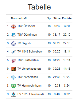 Die Dritte Mannschaft sicherte sich durch einen Satzgewinn gegen Mantel Weiherhammer den vierten Platz. Und schob sich in der Platzierung vor Ursensollen 1 und 2.