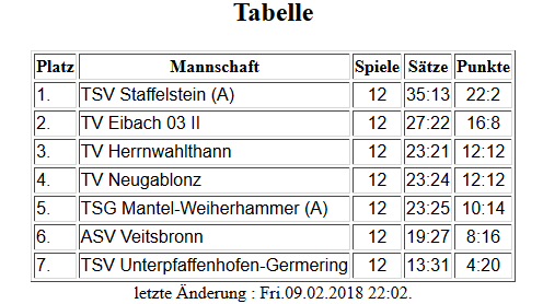 Leider reichte es durch das schlechtere Ballverhältnis nur für den dritten Gruppenplatz. Es ging in den Platzierungsspielen gegen Amendingen um Platz 5. Dieser wurde sich durch den Sieg in zwei Sätzen mit 11:4 und 11:5 klar gesichert.